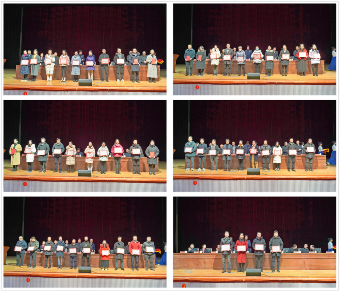 党委副书记李军林宣读了2022年度先进单位、优秀教师、优秀领导干部、优秀管理工作者、优秀工勤人员以及教学、科研、社会服务突出贡献先进团体和个人的表彰决定。校领导为获奖者颁奖。