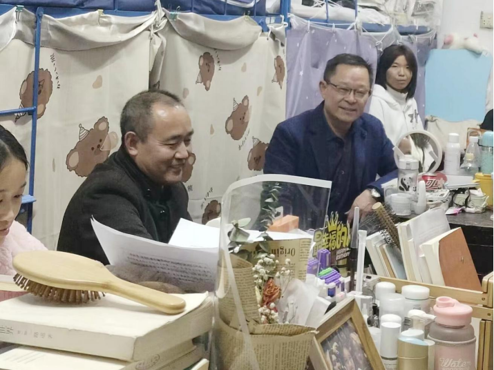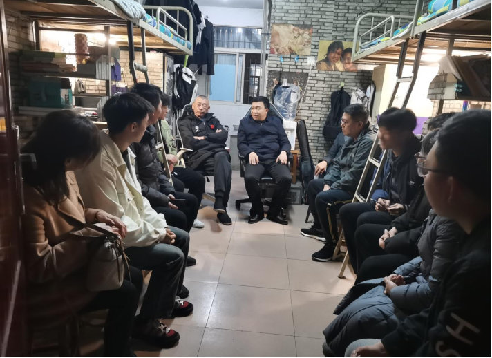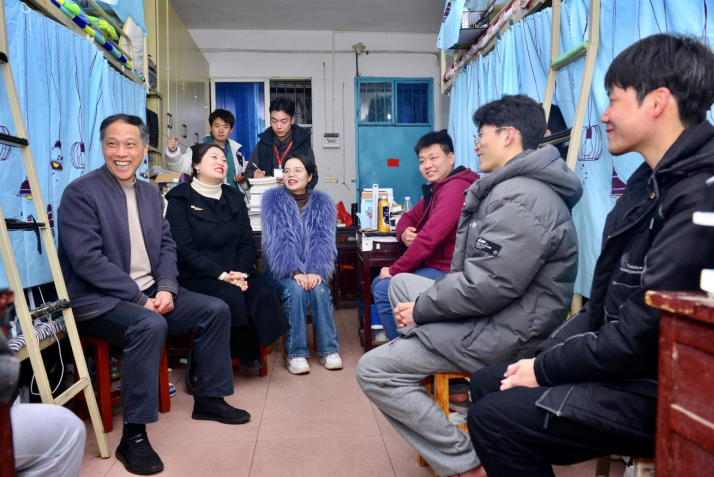 校长刘铁铭来到17栋309室、15栋302室与同学们亲切交流。在17栋309室,铁铭校长和大家围坐在一起,仔细询问每一位同学的情况,了解大家学习生活上的现状和需求,倾听大家对学校的意见。通过讲述发生在湘赣一带的革命故事,他勉励同学们铭记历史厚植爱国主义情怀。15栋302室,铁铭校长与大家讨论起专业学习以及如何提高自我能力。他以自己早年勤工俭学的经历为例,鼓励大家坚定理想信念,增强责任担当意识,在实践中不断完善自我。每到一处,铁铭校长都叮嘱同学们加强时间管理,养成良好的学习生活习惯,注意个人身心健康,加强体育锻炼,鼓励同学们做好职业生涯规划,提高综合能力。铁铭校长还与同学们互留联系方式,并表示他随时愿意为学生排解困惑。
