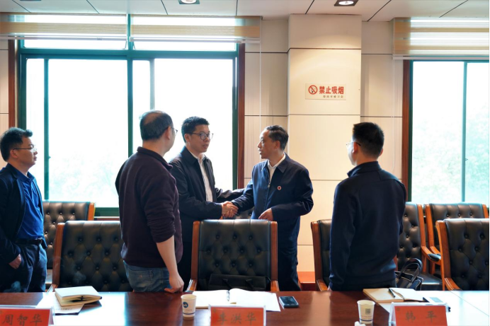 调研座谈会前,党委书记刘铁铭会见了周智华一行。(文/宣传部 陈依婷 图/唐宇兴)