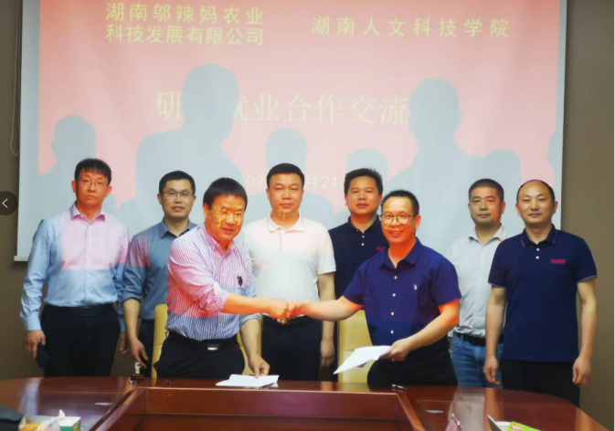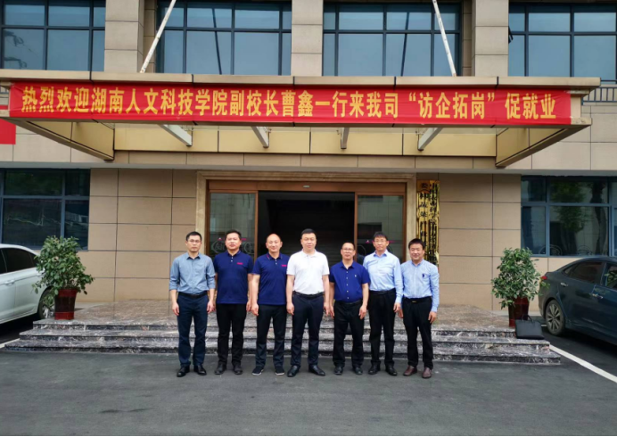 4月21日,党委委员、副校长曹鑫率队到涟源市桥头河镇湖南邬辣妈农业科技发展有限公司开展访企拓岗。农生院院长陈勇、商学院院长刘辛田、就业指导中心主任刘盛愚等陪同。