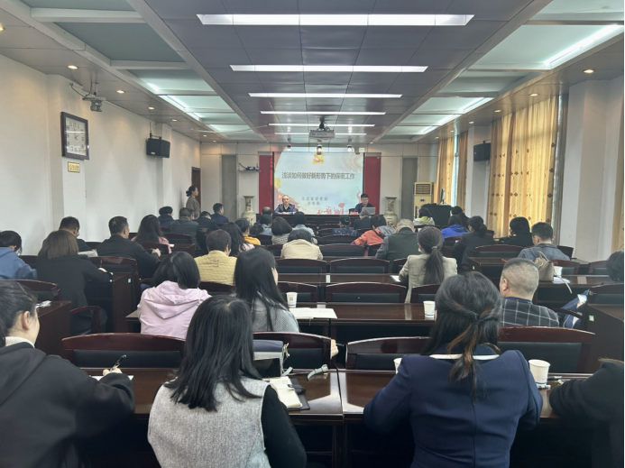 4月27日下午,KY官网在明德楼第三会议室举办保密工作专题讲座,娄底市国家保密局保密技术服务中心副主任李传高应邀授课。全校涉密岗位保密员,机关、教辅单位综合科科长(办公室主任)共计50余人参加培训。党委委员、副校长刘铁峰主持。