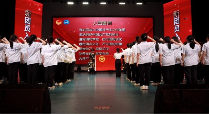 现场举行了入团仪式,团员代表熊朝霞同学带领全体团员青年面对团旗庄严宣誓。校团委副书记刘佳宣读新团员名单,领导老师为30名新团员佩戴团徽、颁发团员证。