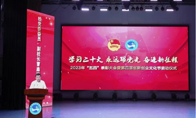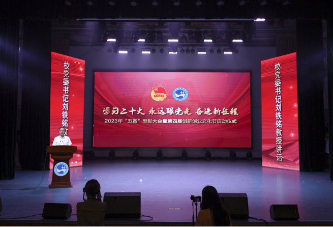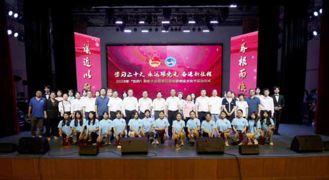 在第四届大学生创新创业文化节启动仪式上,在场校领导一同按下启动按钮,在合唱《奔跑的青春》和热烈的掌声中,2023年“五四”表彰大会暨第四届大学生创新创业文化节启动仪式圆满落幕!(供稿人:王晨;一审:赵雅欣;二审:曹瑜虹;三审:刘佳)