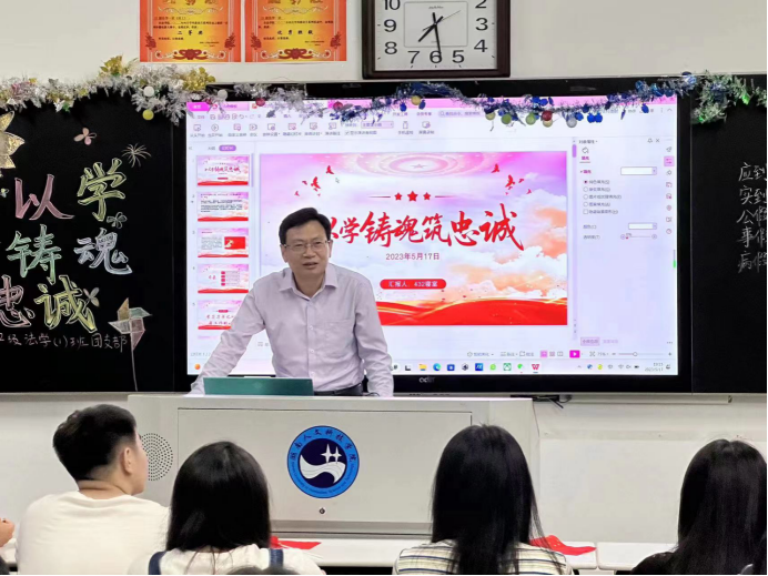 初夏的校园绿意盎然生机勃勃,学习贯彻习近平新时代中国特色社会主义思想主题教育开展如火如荼。为教育引导广大学子牢固树立对马克思主义的信仰、对中国特色社会主义的信念、对中华民族伟大复兴中国梦的信心,5月17日晚,宣传统战部联合校团委在2022级学生中开展了“以学铸魂践忠诚”主题团课暨“三联系”,在家校领导和中层干部深入学生班级指导活动。
