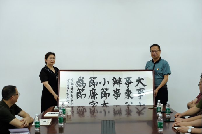 “公生明廉生威”、“一分一毫都是国家资产,一票一据彰显道德情操”“清廉是最好的护身符”……一副副飘着墨香的廉政警句,是纪委书记精心挑选,是美术与设计学院师生用心用情书写,不仅表达了美好的节日祝福,同时也向全体党员干部职工传递了廉洁奉公的理念,让大家在润物无声中接受廉洁文化的熏陶,自觉做到廉洁过节、文明过节。凌艳平强调,在端午前夕,选择“人财物”关键岗位、重点人员送上廉礼,希望大家牢记“清廉是福,贪欲是祸”,将廉政警句内化于心、外化于行,做到以清为美、以廉为荣,特别是“一把手”要以身作则,率先垂范,管好班子带好队伍,营造风清气正的政治生态,服务学校建设与发展。