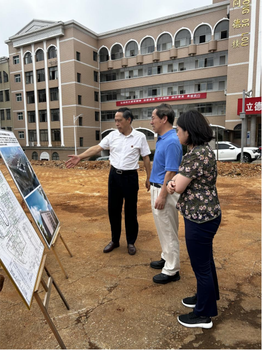 郝福庆一行实地查看了理工科实训楼和产业产教融合实训基地建设情况。刘铁铭介绍了教育强国项目建设进度、后期功能布局、使用管理及学校整体发展规划。