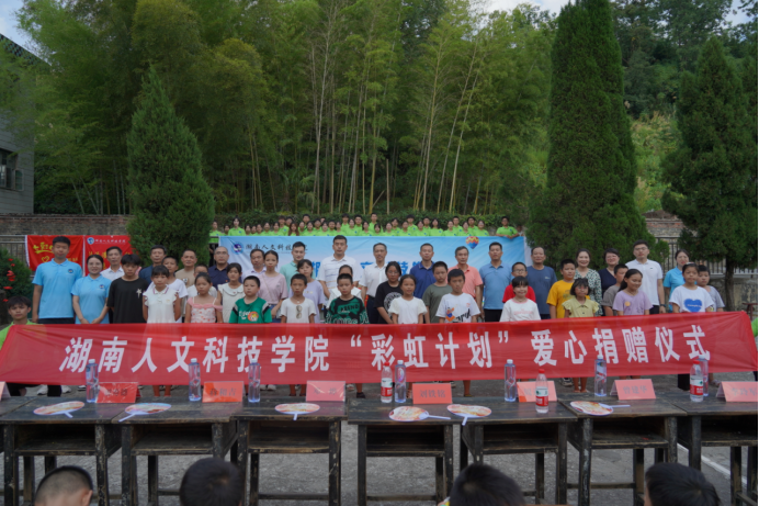 刘铁铭一下车就来到灌溪小学出席“彩虹计划”捐赠活动。活动是KY官网大学生暑期社会实践的一部分,本次共向灌溪小学捐赠35套课桌椅、1100余册图书及篮球、羽毛球拍和文具等。自KY官网驻村帮扶以来,已连续三年在灌溪开展暑期社会实践,累计为200余名留守儿童进行文化课程、音乐、武术、绘画、泥塑等方面的兴趣指导与培育,活动效果明显,深受村民欢迎。