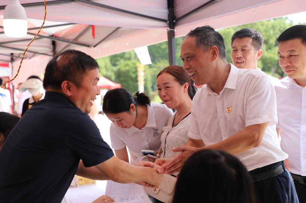 在海园广场迎新点,每到一个学院,刘铁铭都仔细了解迎新工作进展和新生报到情况,并对工作人员的辛勤付出表示感谢。
