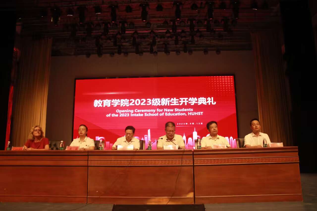 9月12日下午,教育学院2023级新生开学典礼暨入学教育在逸夫楼音乐厅举行。党委委员、副校长陈志国出席并讲话。英国巴斯斯巴大学教育学院教授Sarah,国际合作与交流中心主任黄敏,教育学院党总支书记邹坤、院长刘超良、副院长刘黎明,学院教研室、实验室、教务办、学工办主任,辅导员、新生班主任以及教育学院2023级全体新生参加大会。开学典礼由刘超良主持。