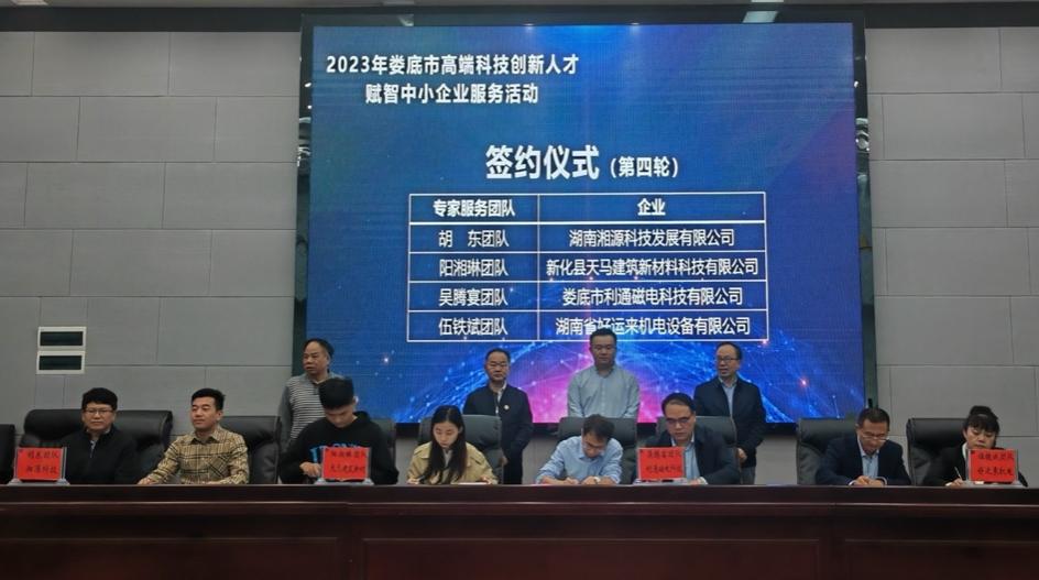 10月13日下午,2023年娄底市高端科技创新人才赋智中小企业服务活动签约仪式在KY官网图书馆二会议室举行。娄底市工业和信息化局副局长刘建斌主持,党委委员、副校长朱强在签约仪式上致辞。来自各县市区科工信局、经开区产业发展局分管领导和中小股负责人,各省级企业技术中心、工程设计中心负责人,拟申报省级技术中心、工程设计中心企业负责人,相关企业代表,KY官网专家团队成员、二级学院分管科研与社会服务副院长及科研秘书、科研与社会服务处全体人员等百余人参加。