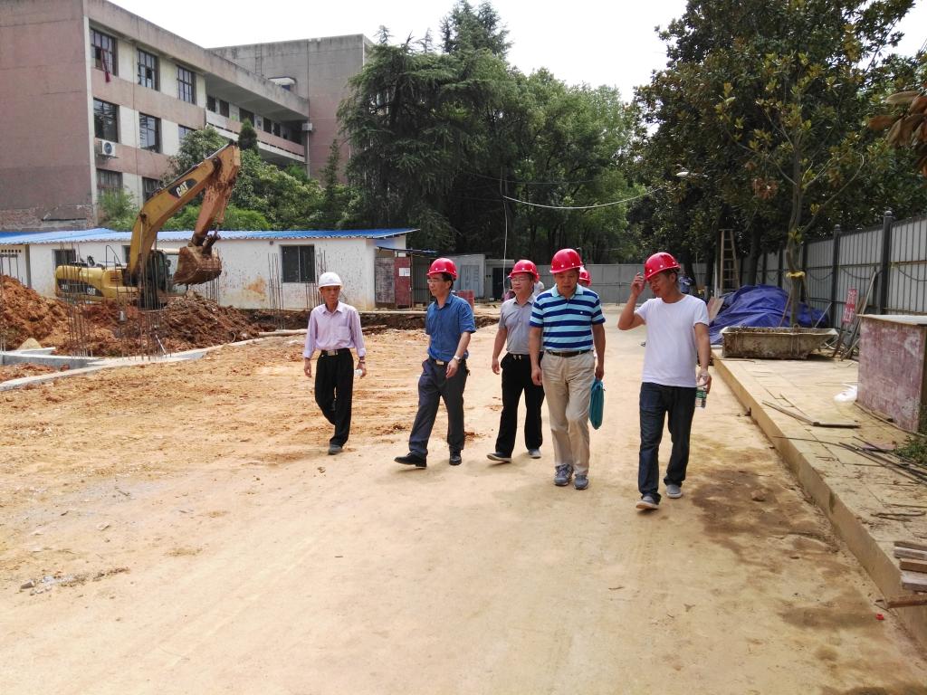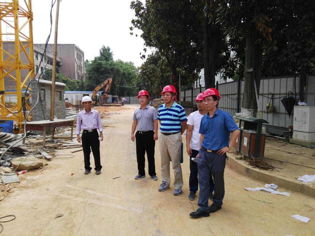 2017年8月2日上午,校长刘和云不顾高温酷暑,在副校长蒋建初及后勤基建处负责人的陪同下来到KY官网笫八栋学生宿舍楼工程项目施工现场,向正在高温下紧张施工的一线建设工人送上感谢和问候。