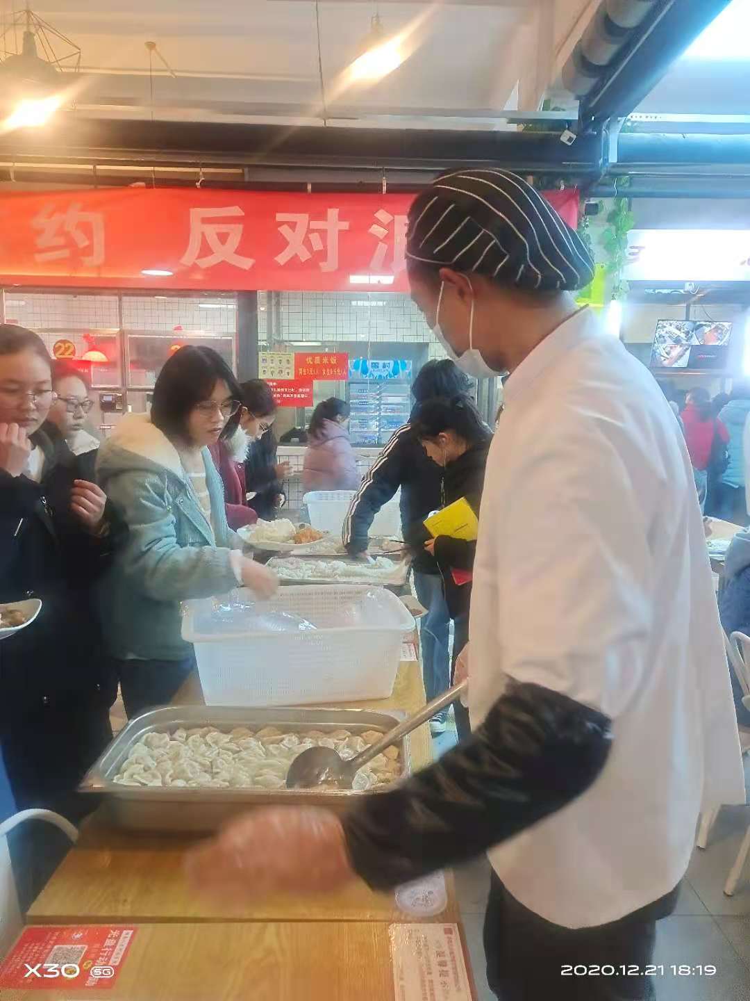 当问到行远餐厅店长开展此次活动的初衷时,她微笑着说:“很多学生都离家很远,自己也是孩子的母亲,刚好借冬至节来开展送汤圆,送饺子活动,让学生感受到食堂像家一般的温暖”。在活动中食堂员工们感触最深的就是学生们很有礼貌,学生高兴我们也就高兴了,让学生对食堂感到满意,我们的饮食服务就做好了,大家这样说道。