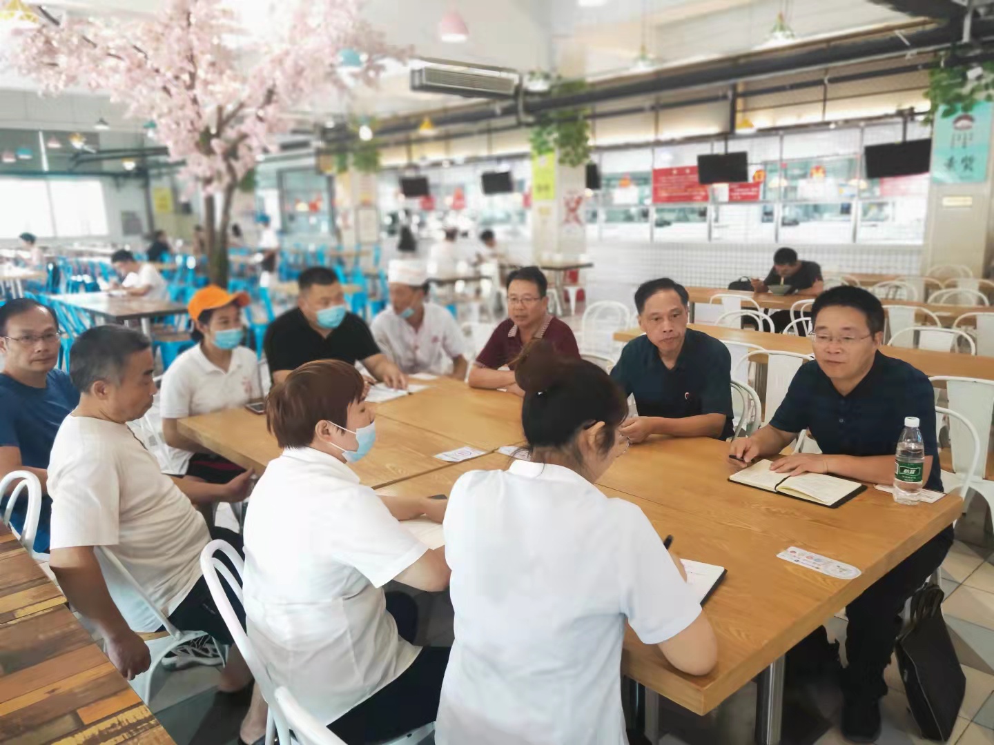刘铁铭首先对学生食堂的饮食供应及安全情况进行了现场检查,然后在淳和楼一楼行远餐厅召开座谈会,听取了后勤基建处及餐饮公司负责人关于学生食堂运行管理的情况汇报。