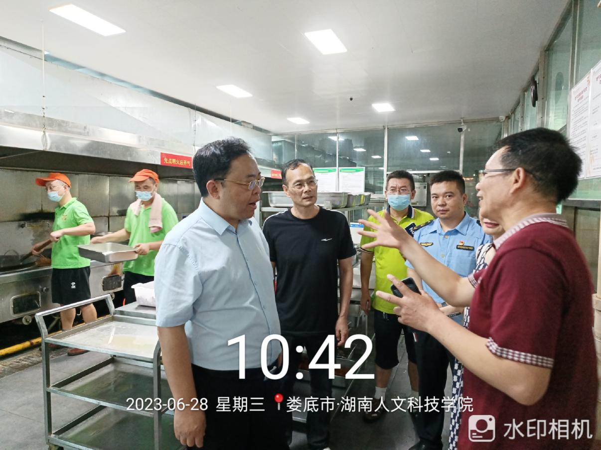 食品安全无小事,校园食品安全一直是各级部门关心的场所,涉及人员多,管控难度大,为确保广大师生吃得安全,吃得放心,吃得健康,2023年6月28日上午10点30分,娄底市常务副市长蒋天海一行来KY官网食堂检查,这是本学期第二次来KY官网检查指导食品安全工作,为做到强监管、实责任,推动落实食品安全“两个责任” 分层分级包保工作落实落细无遗漏。