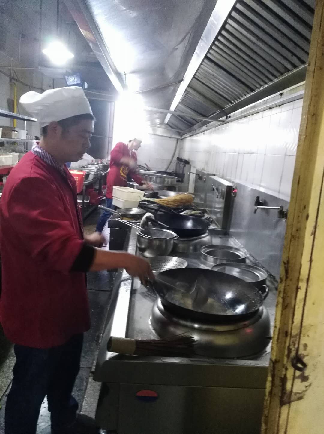 然后,对学生一、二食堂进行了检查,对学生食堂的管理员、班长进行了叮嘱“一定要确保安全,坚决杜绝饮食安全事故发生”;对学生食堂下水盖板孔堵塞,流水不畅的问题,要求食堂员工要勤疏通。