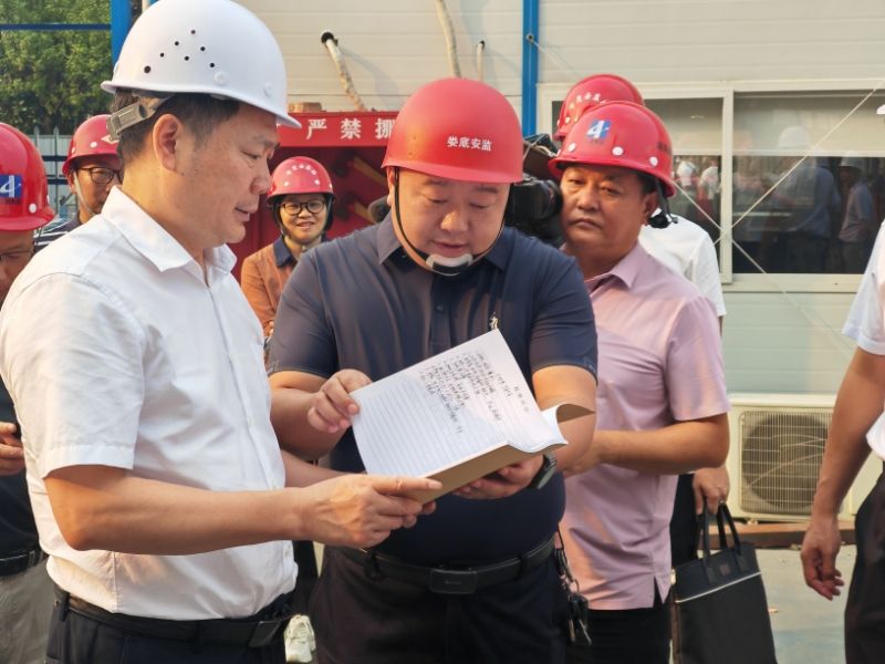 在产业产教融合实训基地项目施工现场,向乾勇听取了学校和承建单位关于项目安全生产工作落实情况的汇报,并详细听取了项目进度以及在项目推进中遇到的困难。检查组一行重点检查了项目施工现场安全生产实施情况,对安全生产相关台账资料进行了查看。