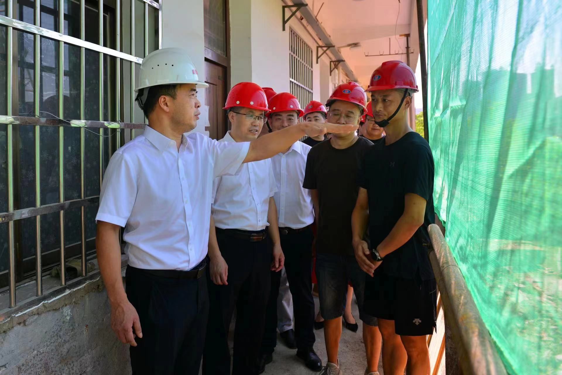 盛明科一行检查了学生宿舍5栋改造、阳光公寓7号楼建设、理工科实训楼建设等项目,认真听取了各个项目的建设进展情况汇报,给予了深入而全面的现场指导,并亲切慰问一线工作人员和建设人员,发放了藿香正气水、西瓜、矿泉水等防暑物资。在查看学生宿舍5栋改造和阳光公寓7号楼建设过程中,盛明科表示,一定要做好宿舍阳台及楼道的围栏高度设计和质量监督工作,确保学生生命安全;必须要做好室内通风工作,保证宿舍空气质量达标;务必要做好寝室和附属工程的卫生工作,力求营造出一个温馨如家的环境。