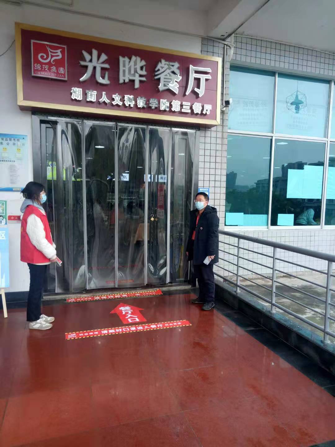 随后按照活动方案,基建处全体党员在食堂开展为期三天的“同心抗疫,争当先锋”的志愿者活动,每天中晚餐时在各食堂餐厅入口敦促全体师生配合疫情防控工作,做好个人防护,筑牢筑实疫情防控墙,坚决打赢新冠肺炎疫情防控阻击战。