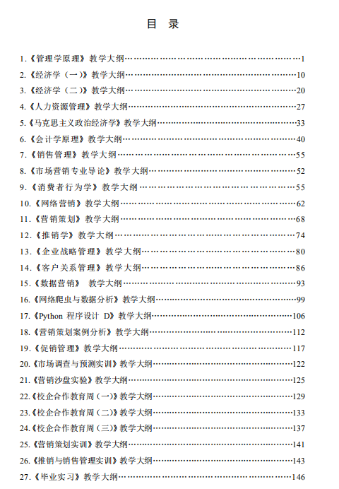市场营销课程教学大纲汇编目录