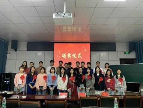 交流会最后,刘辛田亲自给每位优秀毕业生戴上红花颁发纪念品并合影留念。