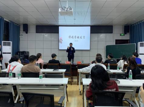 5月17日晚,商学院在高韵楼101举办了以“举商梦之旗,筑成才之路”为主题的优秀毕业生交流表彰会。学院党总支书记刘辉、院长刘辛田、辅导员曾文果、优秀毕业生代表以及18级、19级、20级部分学生参加了这场交流表彰会。