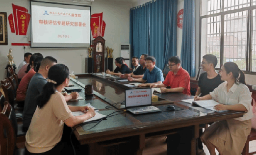 关于迎评工作,刘辛田总结了现阶段工作进展情况,对后期的阶段性工作进展做了专题部署。他强调,各教研室、各部门必须按时间节点保质保量完成审核评估自评自建工作。副院长刘加林和杨怀宏分别对试卷和毕业论文的归档整理、实习实训材料的归档整理进行了补充说明。