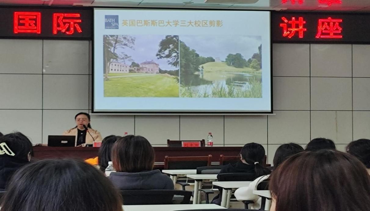 黄敏还重点介绍了英国巴斯斯巴大学与KY官网长期合作情况。她通过视频和图片带领同学们走进英国巴斯斯巴大学,感受国外高校学习环境与氛围。师生互动环节,参会学生积极提问,探讨留学申请流程、留学后职业发展等热点话题,黄敏均提供了详细解答和实用建议。