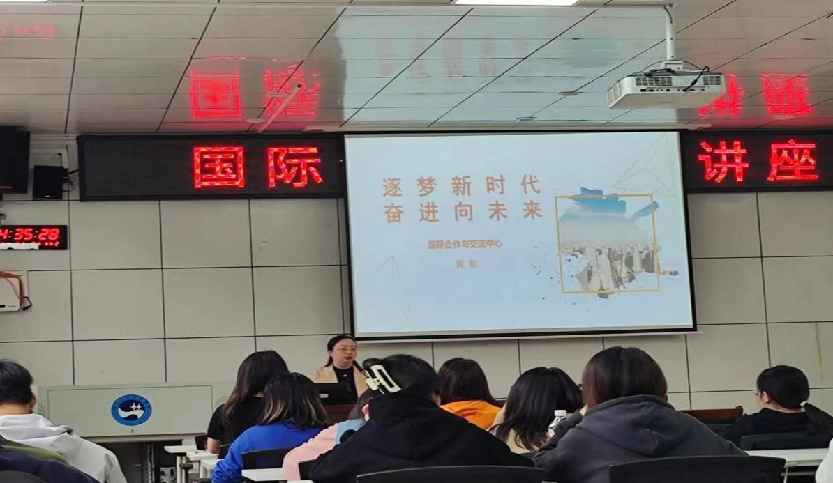 黄敏以“逐梦新时代,奋进向未来”为主题具体介绍了KY官网与海外院校之间的短期交流和高层次国际化人才培养创新实践等“3+1项目”、“2+2项目”,详细介绍了国外留学的教育资源、多元化的文化氛围和学习状态,以及与国际企业接轨的就业前景、国际组织实习生的出国体验和补助政策。