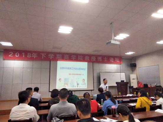 为配合校庆40周年活动,营造KY官网良好学术氛围,推动KY官网师生积极开展学术交流活动,提高科技创新能力和科研水平,2018年10月9日,KY官网在同德楼601召开了2018年下学期商学院教授博士论坛,刘加林博士、彭晓辉教授、罗伟祎博士和朱强教授等四位老师作了专题发言,商学院全体教师和2018级研究生认真聆听了讲座,讲座由副院长王晓军主持。