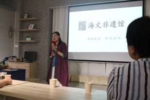 海文非遗馆馆长黄海文老师从自身的经历入手,生动精彩的讲解了非遗馆成立的原由、非遗馆的文化内涵、非遗项目及传承人现状。黄馆长特别提出,海文非遗馆旨着力挖掘、保护非遗,并传播和推广非遗文化,让传统技艺工匠精神永存,让非遗传承人生活得更加幸福。海文非遗馆是非遗文化的践行者,如海文非遗大讲堂、非遗剪纸、非遗进校园、非遗进社区、非遗体验课程等系列活动,让参与者感受传统文化的魅力。