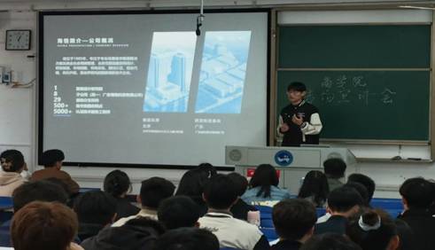 4月26日中午,商学院在致远楼210举办了海悟集团专场宣讲会。参与宣讲会的人员有海悟集团代表、就业专干黄鹍鹏、2023届毕业生。