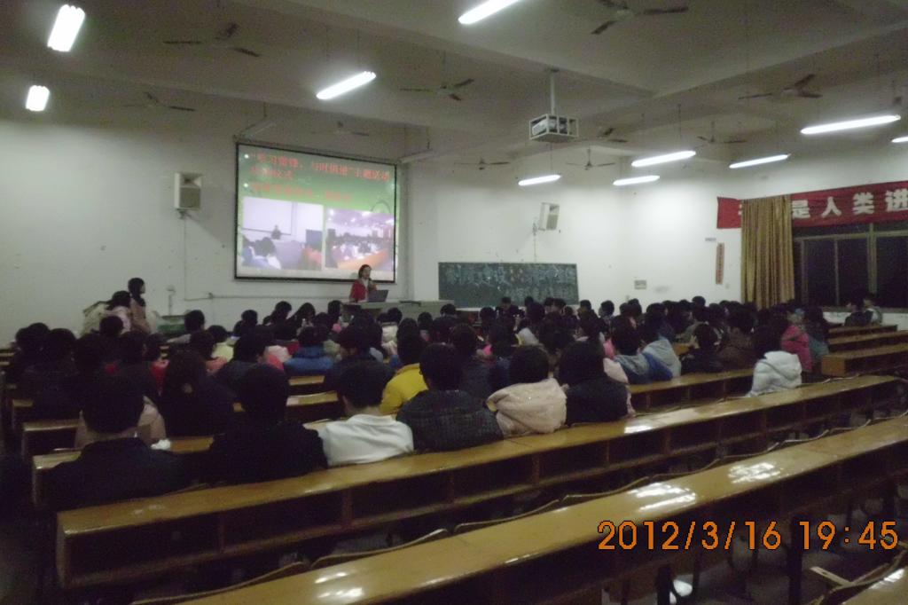 今年是雷锋同志去世50周年也是毛主席题词向雷锋同志学习49年,我系党总支和团总支联合组织了一届主题为“关于弘扬雷锋精神重在制度建设还是精神宣传”的辩论赛。3月16日晚七点半,辩论赛在经管楼601阶梯教室举行。参加此次辩论赛的领导老师有党总支副书记刘红燃书记,党总支组织委员李宁老师,王业良老师,各党支部书记以及团总支书记,和我系毕业的优秀学生陈威学长。