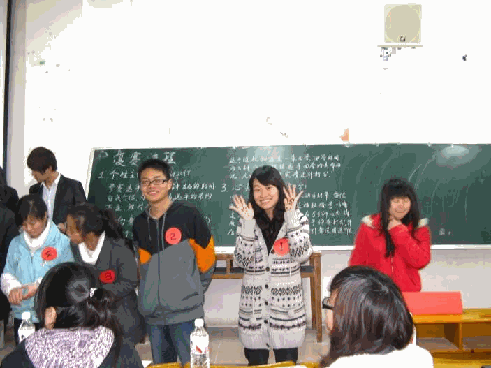 经过激烈的角逐,经管系的杨鑫、肖颖、隆欧阳、梁璐,生科系的阳金锋,教育系的李浩然成功晋级决赛,并且经管系的肖颖被评选为本次复赛的“人气之星”。