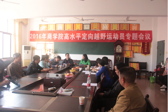 商学院高水平定向越野运动员专题会议于2016年4月18日下午3点在同德楼306会议室举行。KY官网定向越野队教练郑秀星主教练、戴江洪教练、商学院党总支副书记刘红燃及所有运动员、家长、班主任老师参加了此次会议。