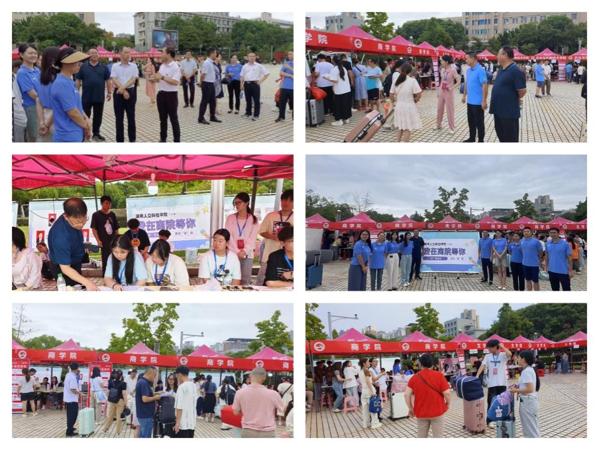 在学院党总支书记刘辉、院长刘辛田和党总支副书记胡益龙的带领下,全体辅导员、新生班主任、新生班助、团学会干部、学生党员、迎新志愿者前往海园广场迎新点,一起迎接来自全国各地的五百多名商学院新生。他们齐心协力,为新生们提供了全方位的服务。他们不仅耐心细致地协助新生完成注册登记、领取宿舍钥匙、亲自带领新生前往宿舍,而且为新生详细介绍各个专业的特点、学习方向以及未来的就业前景,帮助新生们更快地找到自己的定位,明确学习目标,顺利融入校园生活。