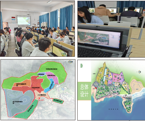 柳金芝工程师结合自身丰富的实践经验,以水府庙龙腾庄园、龙山蓝莓谷等实战案例,从找出“亮点”、制造“爆点”、抓住“重点”、制造“兴奋点”,深入浅出还原规划设计实战场景,为学生们带来了生动而富有启发性的教学内容。学生们通过实际操作,深入了解了旅游规划制图的重要性和技巧。