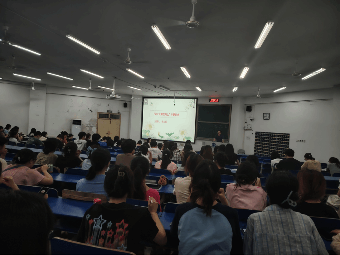 此次讲座不仅仅是专业知识的学习盛宴,更是一次重要的思想政治教育课。李谷民理论结合案例,深入浅出,让同学们明白了人以正气立、事行正道远,对于即将走入实习岗位的学生来说这也是一场重要的职业教育课。希望同学们通过学习积极响应党和国家的号召,顺应审计新形势新要求,不惧困难和挑战,开启新征程。