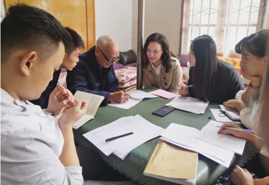 接下来,石潇纯和彭晓辉两位教授分别带上两组同学到村民家里进行访谈,提出有关农村文化建设的各项问题,并收回60份调研问卷。
