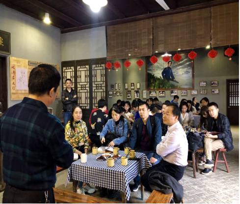 当天下午,一行人来到了有着“梦想小镇”之称的宁乡市天马新村进行走访调研。天马新村村支书向大家介绍了天马新村从建村到现在的振兴和发展过程中的主要经验:一是发展产业经济。推进土地高效流转,建立水果采摘园,进一步吸引游客亲子行来提高村民的经济收入。二是发展非物质文化遗产。积极挖掘油纸伞、皮影戏等非物质文化资源并进行申报,将文化资源转变为经济效益。三是发展能人经济。宁乡市政府将通过政策支持、精神奖励等方式培育和壮大民营企业家群体,让他们安心扎根本地,以此辐射带动天马新村周边的经济发展。调研团队也针对发展方式提出了多方面的建议。