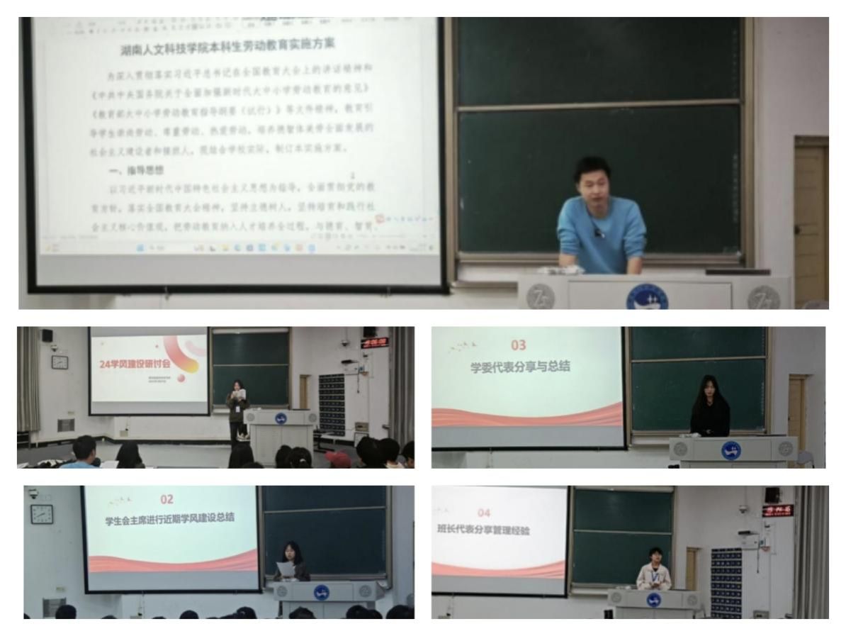 首先学习部对近期学院学风督察情况进行了总结,通过具体案例,直观展现了当前学院学风的整体态势。随后是班长和学习委员代表依次上台,结合班级实际情况,围绕激发学生学习兴趣、培养学生良好学习习惯等主题,提出设立奖惩措施、举办多样化读书主题活动等建议。最后谢迎峰对《KY开元集团官网入口本科生劳动教育实施方案》进行了详细解读,强调学生干部要以身作则,发挥模范引领作用,带动全体同学共同投身学风建设。