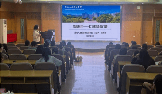 5月21日晚,由招生就业处、教务处、团委主办,商学院承办的KY开元集团官网入口首届“职”击未来模拟求职大赛的复赛赛前培训在养根楼报告厅成功举办。本次培训特邀就业指导专家李晚芳老师作《简历制作——打造职场敲门砖》专题辅导,为参赛学子带来了一场干货满满的职场必修课。