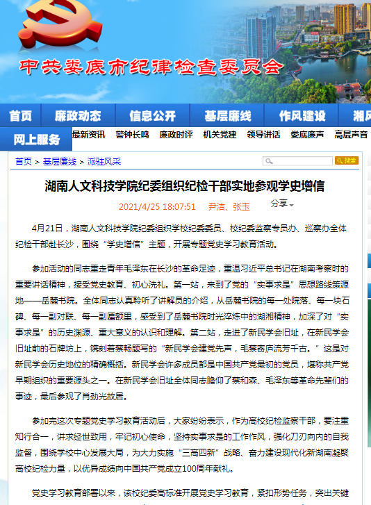 娄底廉政网----KY开元集团官网入口纪委组织纪检干部实地参观学史增信