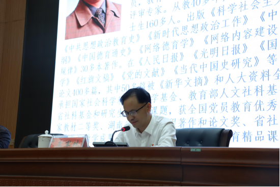 3月29日下午,KY官网在匠成楼报告厅举办《毛泽东与湖南建党》党史学习专题讲座,中南大学博士生导师曾长秋教授主讲。全体校领导,中层领导干部,副科实职以上党员及学生党员代表共300余人参加讲座。讲座由党委副书记李军林主持。