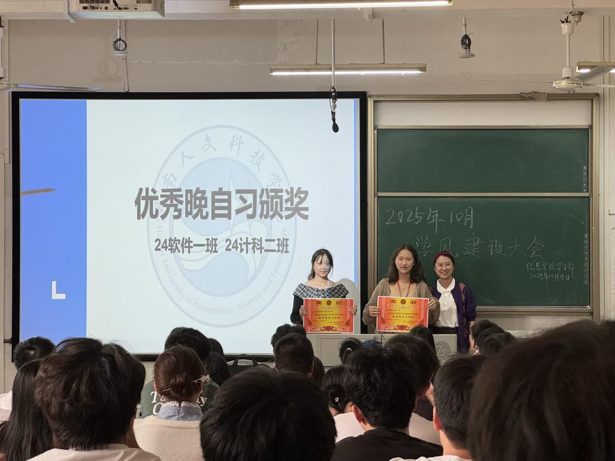 为营造良好学习氛围,打造优良上进的学风并积极迎接师范认证工作,信息学院于2025年10月15日中午在百全楼103召开学风建设大会。党总支副书记朱舒腊,辅导员代鑫龙、杨艺蕾、付妙、李海艳与各班主要班委参与会议。