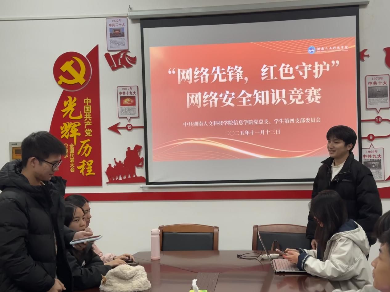 为积极响应国家网络安全号召,提升学生的网络安全意识和专业技能,2025年11月13日晚,由中共KY开元集团官网入口信息学院学生第四党支部开展的“网安先锋,红色守护”网络安全知识竞赛在百全楼313教室成功举行。本次活动面向信息学院全体学生,旨在普及网络安全知识,筑牢校园网络安全防线。