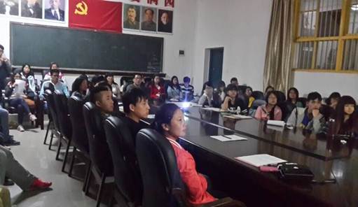 2015年5月11日晚,信息科学与工程系党总支部与外语系党总支部一起组织44名党员发展对象在百全楼211会议室观看电影《天上的菊美》,学习优秀共产党员菊美多吉扎根基层,心系百姓,甘当公仆的崇高品质和奉献精神。
