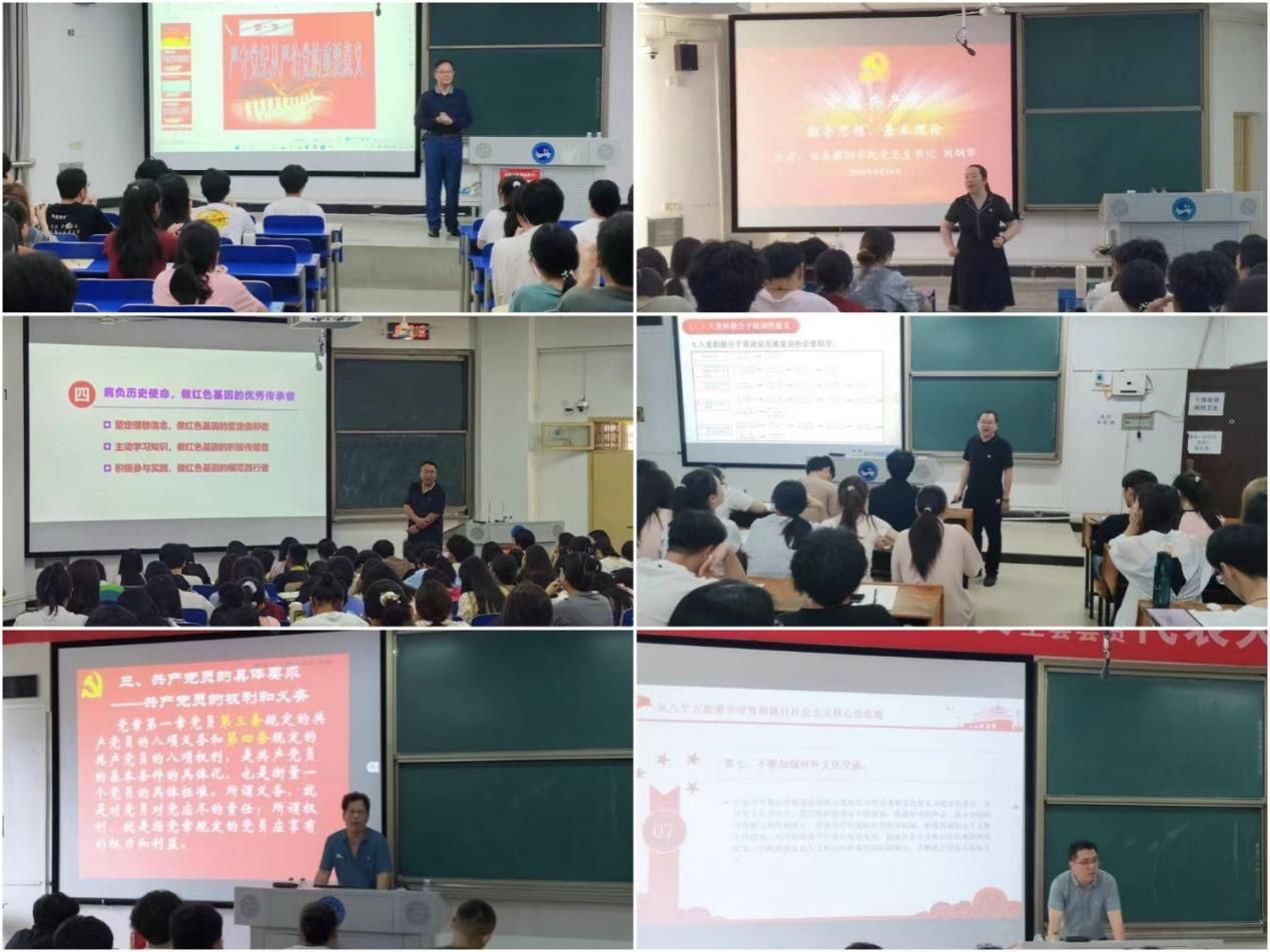 此外,文学院党总支书记尹钟宏老师为入党积极分子们进行了党章党规党纪的深入阐释;音乐与舞蹈学院党总支书记刘纲华老师则为入党积极分子们详细解读了党的指导思想和基本理论;商学院党总支书记刘辉老师着重强调了传承红色基因的重要性;信息学院党总支书记刘凤龙老师则教导入党积极分子们要端正入党动机,以实际行动争取早日加入党组织;信息学院党总支副书记刘宗良老师为入党积极分子们详细讲解了党员的权利、义务以及党的基本路线;颜聪玲老师则协助入党积极分子们深入领会社会主义核心价值观的丰富内涵。