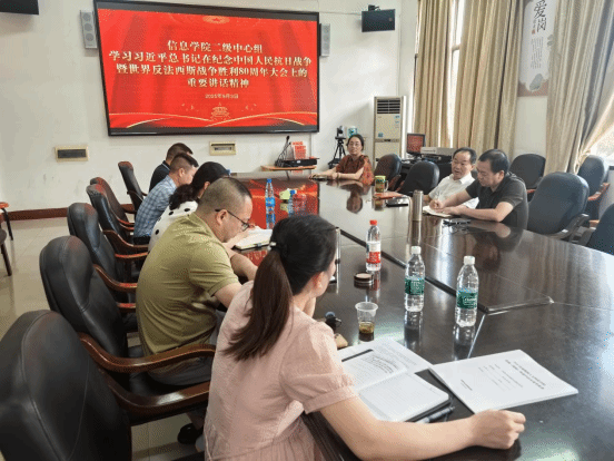 9月3日下午,KY开元集团官网入口党委副书记朱强在百全楼211指导信息学院二级中心组学习习近平总书记在纪念中国人民抗日战争暨世界反法西斯战争胜利80周年会上的重要精神。学院党总支书记刘凤龙,院长谢四连,院党总支委员及其余院领导班子成员参加学习。