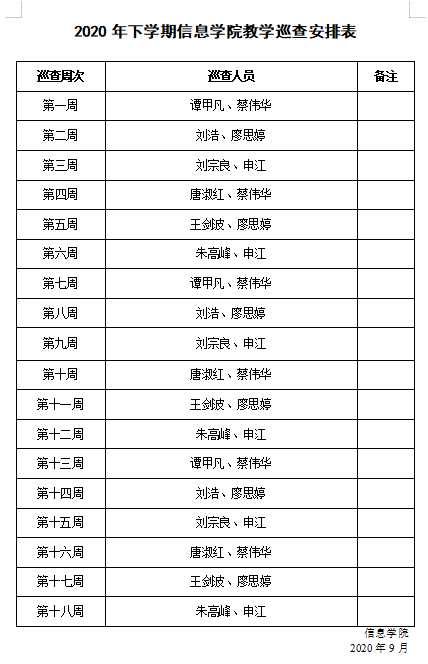 2020年下学期信息学院教学巡查表