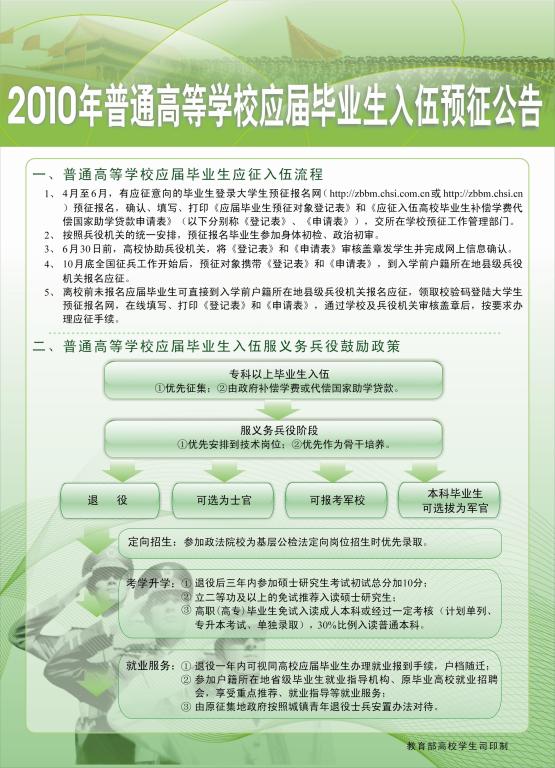 2010年普通高等学校应届毕业生入伍预征公告